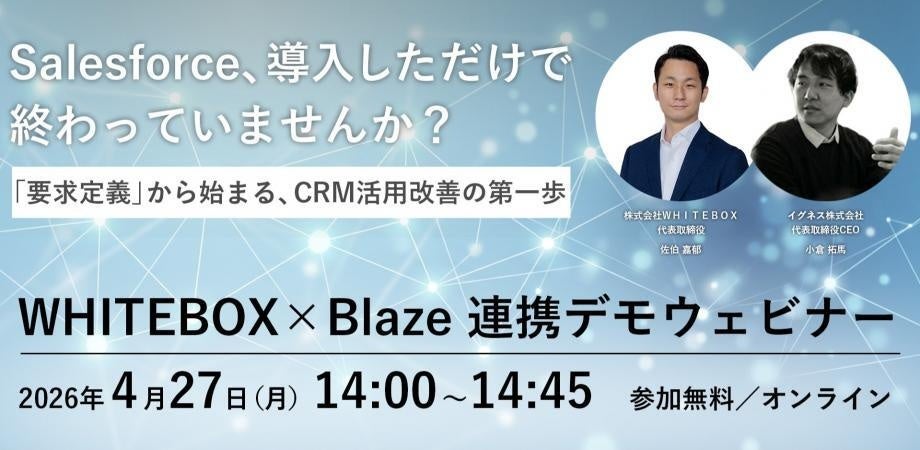 株式会社WHITEBOX(本社:東京都豊島区、代表取締役:佐伯 嘉郁、以下 WHITEBOX社)は、イグネス株式会社(本社:神奈川県横浜市、代表取締役 CEO:小倉 拓馬、以下 イグネス社)が提供するSalesforceの構築・管理AI「Blaze(ブレイズ)」との連携を開始いたしました。