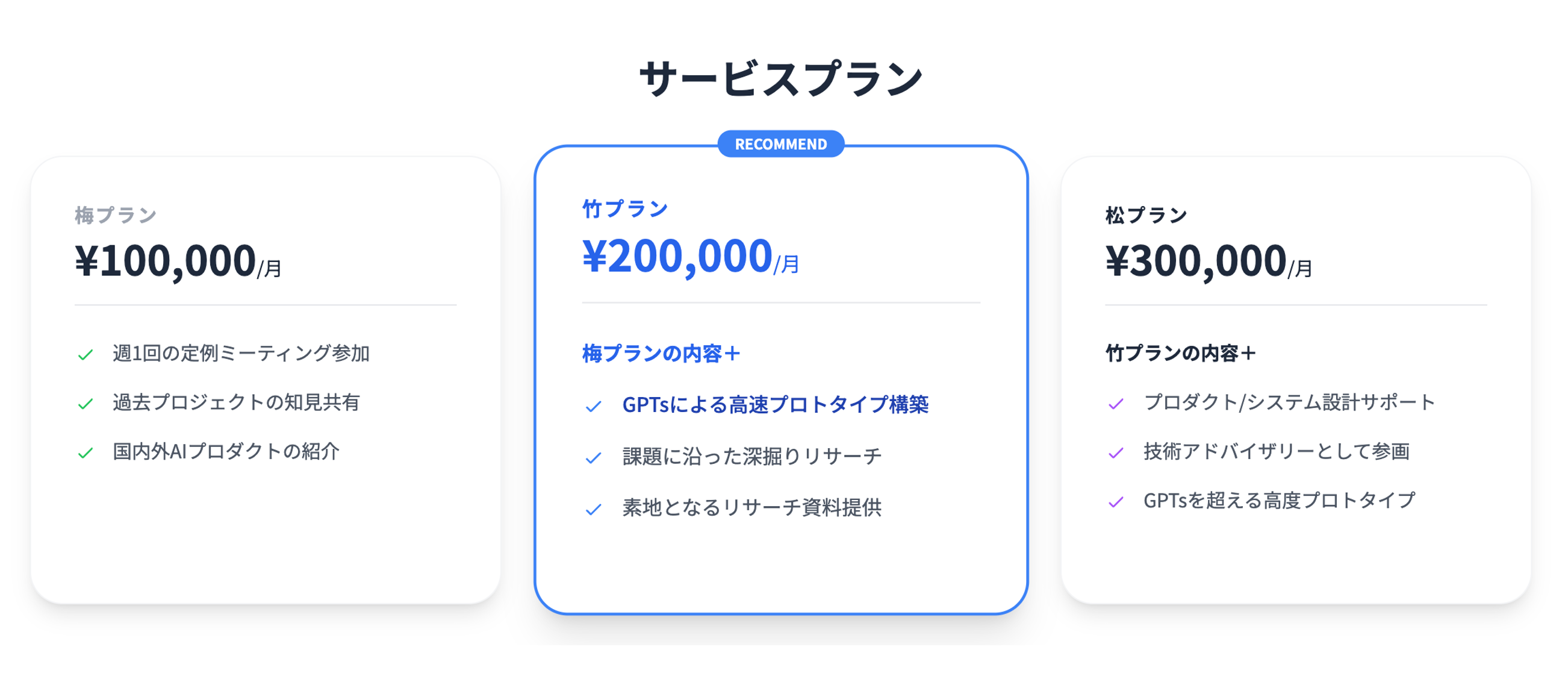 松竹梅で3つのプランをご用意しております。