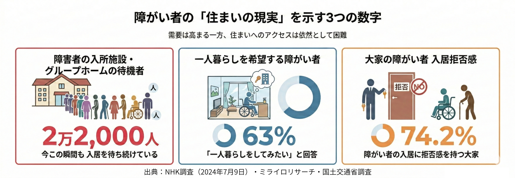利用者も断られる。事業者も断られる。この二重の壁が、障がい者から「住む場所を選ぶ権利」を奪っています。