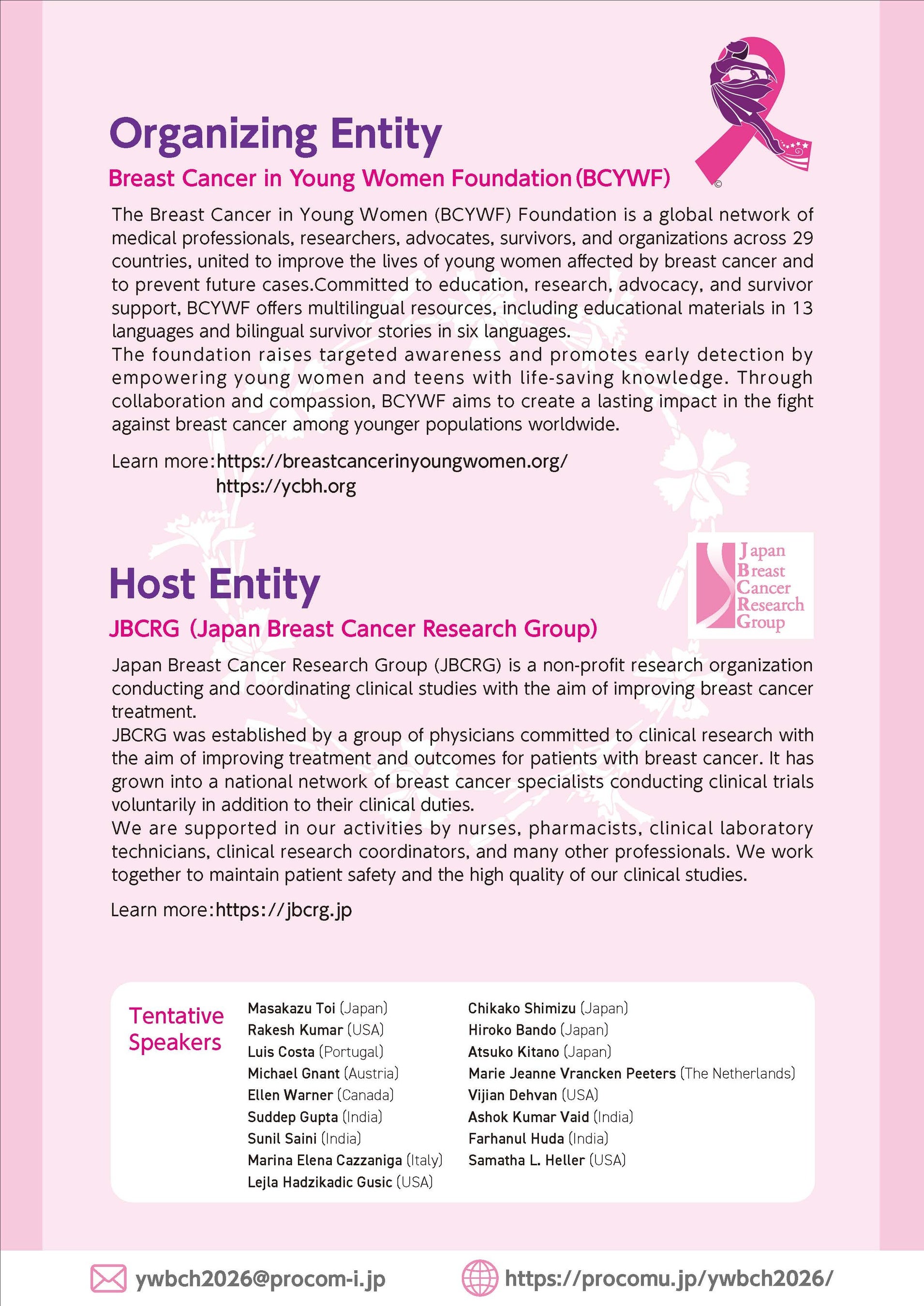 共催: 一般社団法人JBCRG/Breast Cancer in Young Women Foundation(BCYWF)