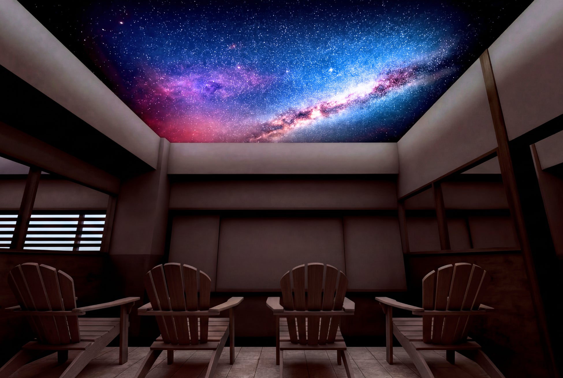 ・星空のプロジェクションマッピングを投影した休憩スペース