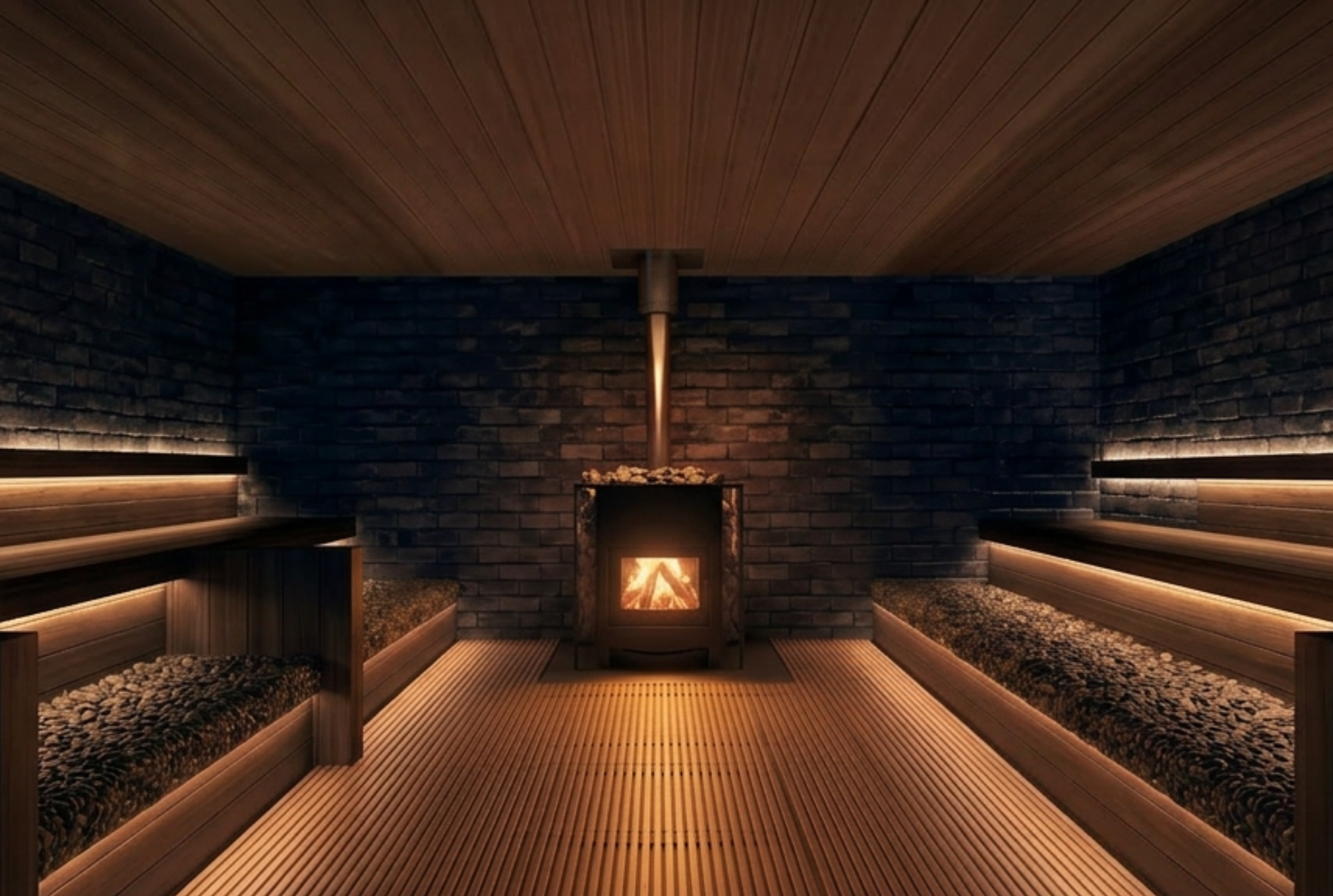 ・最大40名が同時利用可能な本格大型薪サウナ室