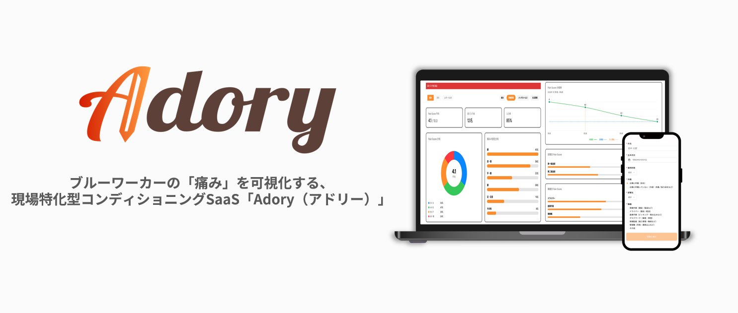 株式会社Adory(本社:東京都品川区、代表取締役:本田 卓也、以下「Adory」)は、こうした課題を解決するため、ブルーワーカーの身体状態を可視化し、労災や離職の未然防止を支援する現場特化型SaaS「Adory(アドリー)」を2026年3月16日より提供開始しました。