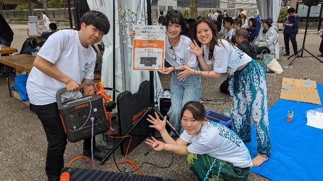 ポータブル電源やソーラーパネルの世界的リーディングブランド「Jackery」(アメリカ)の日本法人である「株式会社ジャクリジャパン」の協力により、同社のポータブル蓄電池とソーラーパネル(日中は太陽光で充電・夜間はBDF燃料を使用した発電機で充電)を35台準備。出展者がフレキシブルに電源を使用できる環境を実現しました。