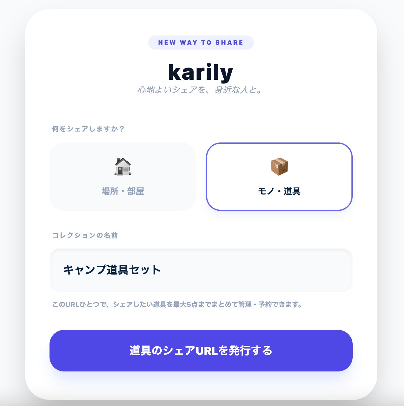 博多弁"借りりぃ"から着想。URLひとつで場所やモノの予約管理ができる、家族・友人向けシェアプラットフォーム「karily」を公開