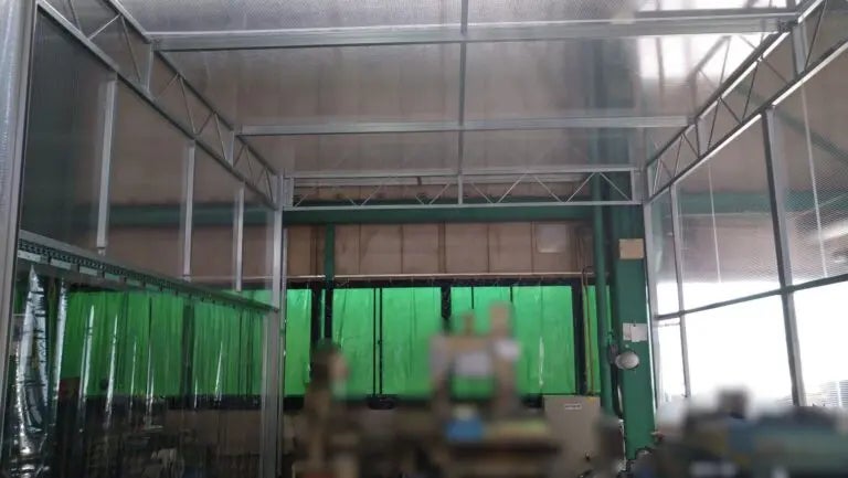 今回主役となる施工事例では、工場内にビニールブースを設置し、間仕切りを作成し、出入口を設けることで、休憩しやすい空間を整備しました。施工前は、夏場の暑さに加え、休憩場所が明確に分かれておらず、空調も効きにくい状況にありました。