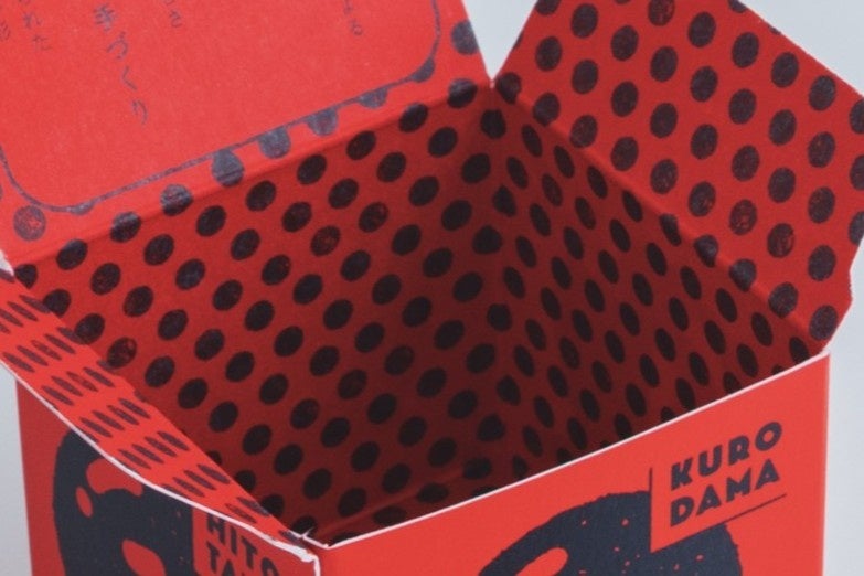 内部一面には「くろ玉」をイメージさせる味のあるドット柄を施し、かわいらしく印象的に仕上げました。