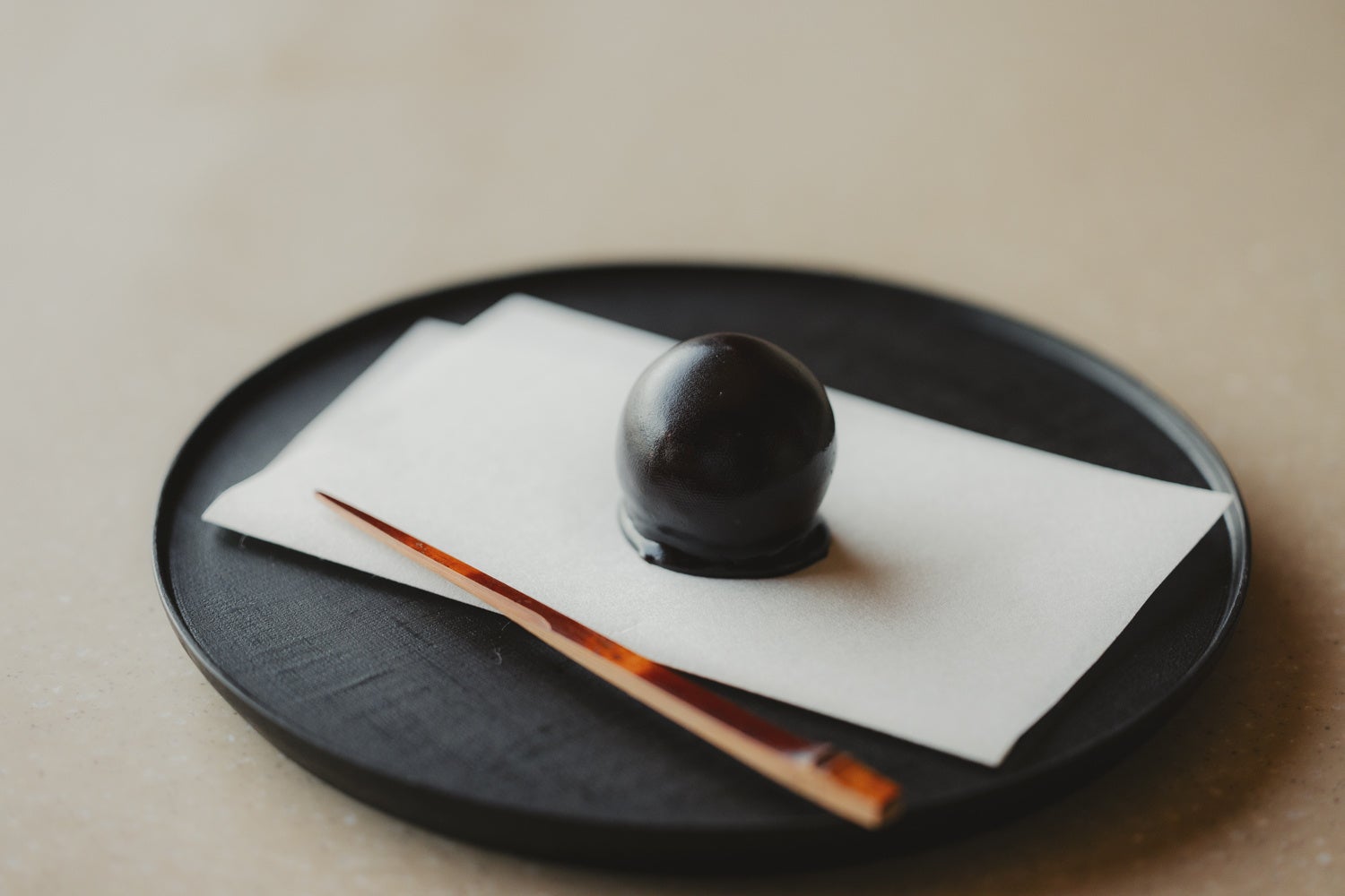 先代の職人がさまざまな形の餡に羊羹をかけ試行錯誤した末、1929年に生まれた「くろ玉」は、丸くてころんとした見た目と素朴な味わいから、地元山梨で愛され続けている澤田屋を代表する和菓子です。