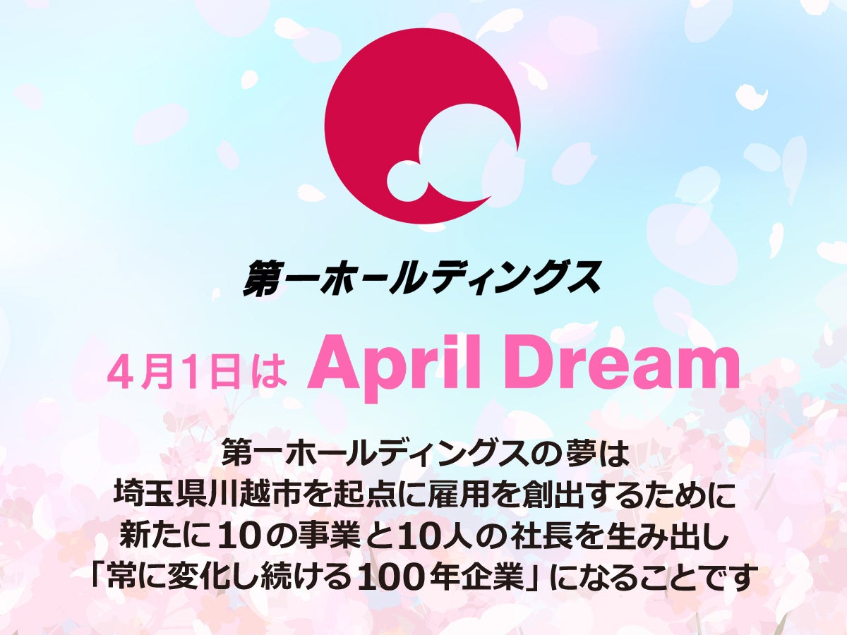 当社は、4月1日を夢を発信する日にしようとするApril Dreamに賛同しています。このプレスリリースは「第一ホールディングスグループ」の夢です。