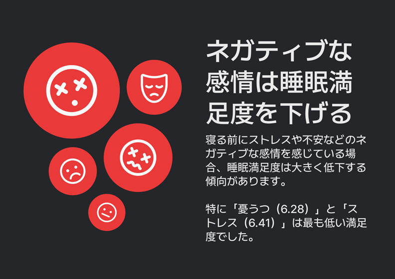 就寝前の感情状態によって睡眠満足度は大きく変わります。