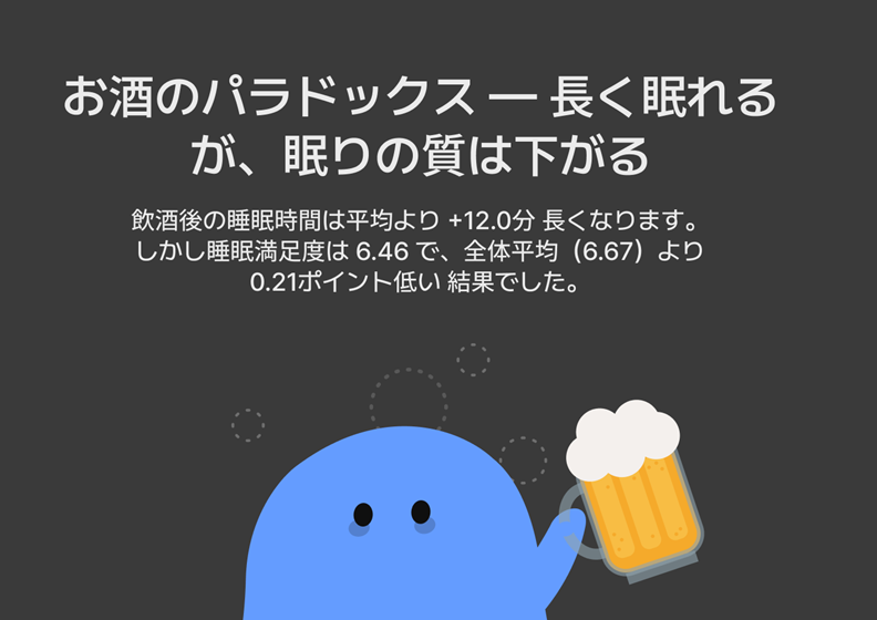 飲酒と睡眠の関係を分析したところ、興味深い結果が見られました。