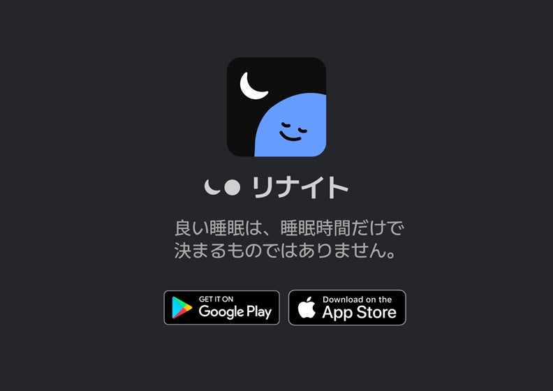 AIと脳科学に基づくパーソナライズ型睡眠ソリューション「リナイト」(旧称:ナイトリー, 開発元:株式会社ムニス)は、世界160万人以上が利用するサブスクリプション型の睡眠アプリです。ユーザーの1日の状態や生活パターン、睡眠中のデータを総合的に分析し、毎晩その人に最適な睡眠環境を提供します。これまでに日本のApp Storeヘルスケアカテゴリ1位を獲得し、151か国で「今日のApp(Today)」に選出されています。