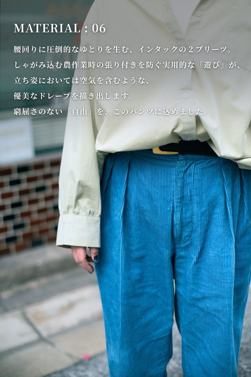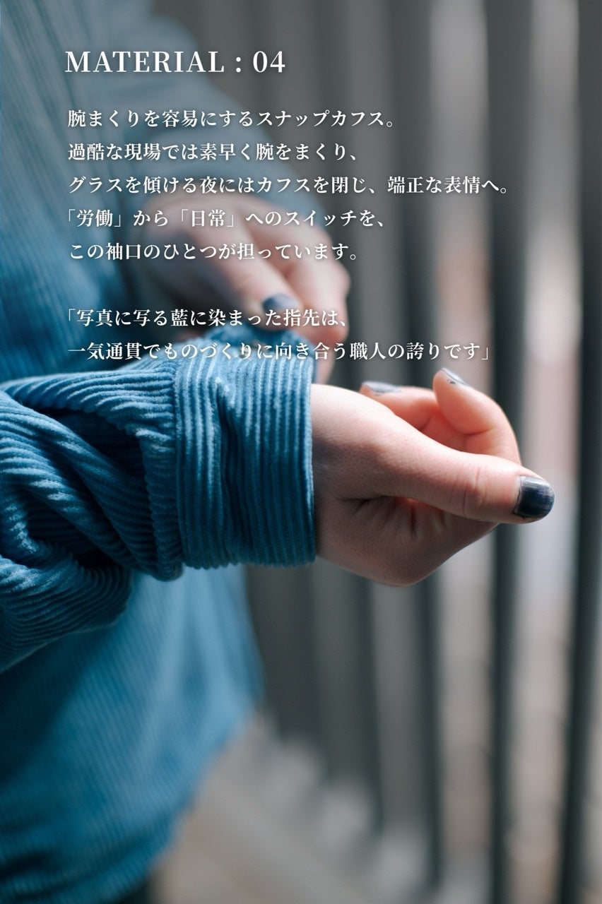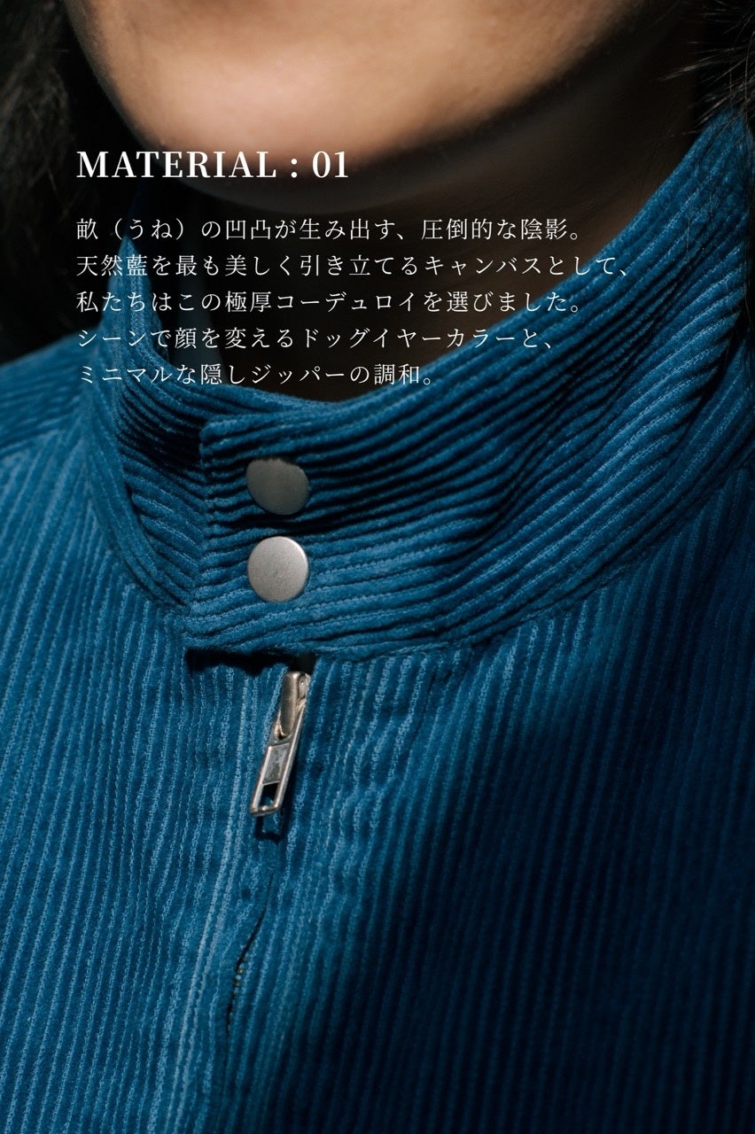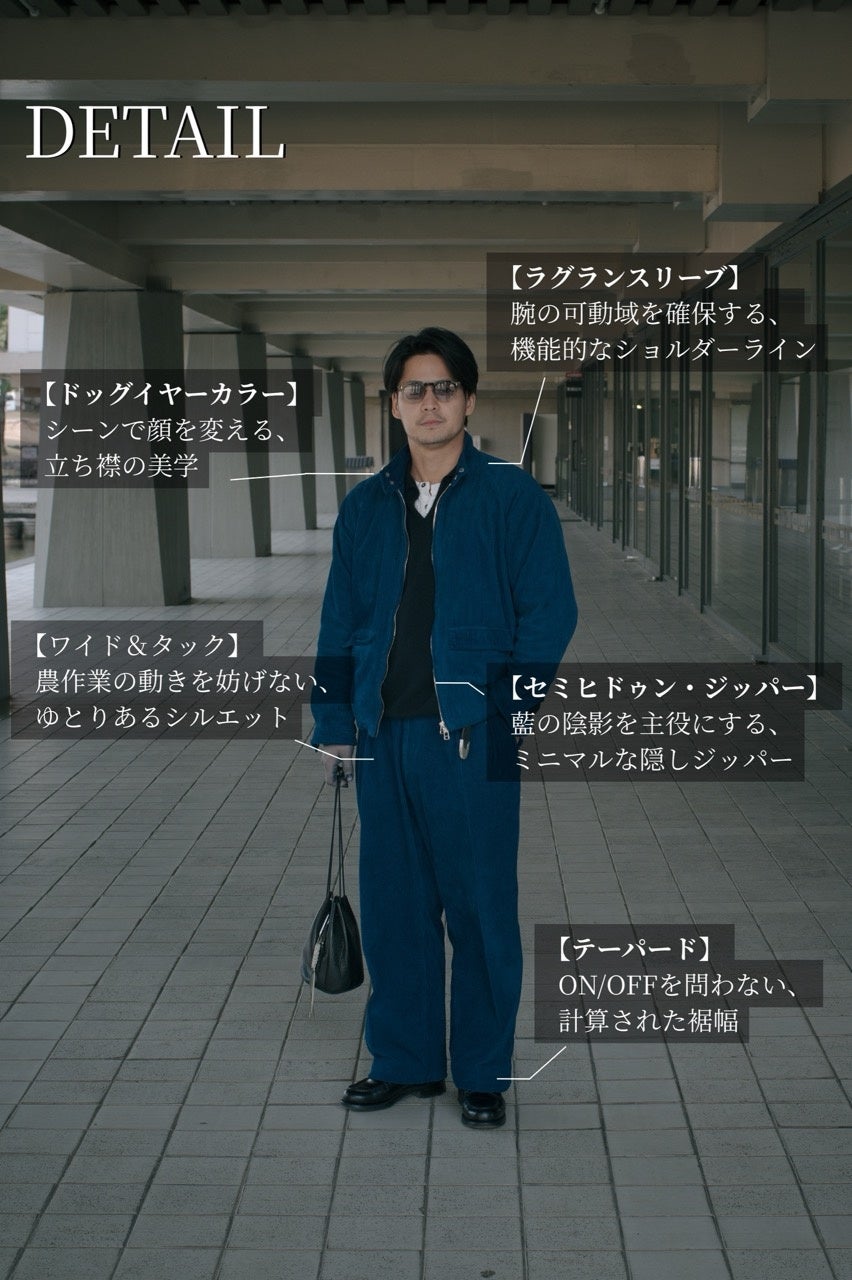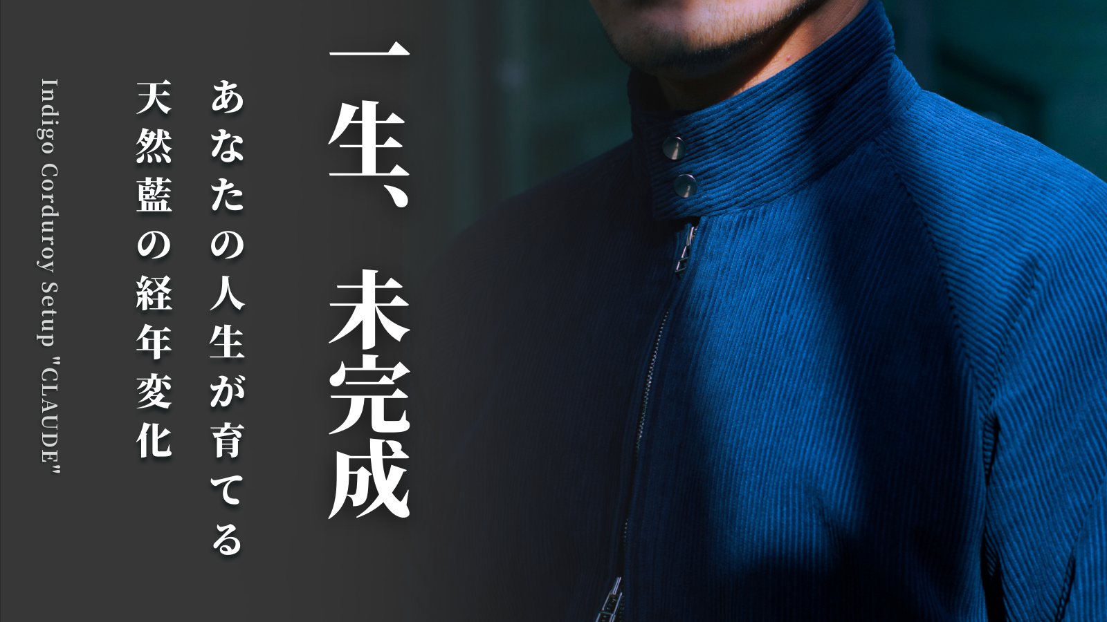 今回、クラウドファンディングサイト「Makuake」にて先行販売を開始するのは、極厚のコーデュロイ生地を天然藍で染め上げたセットアップ「CLAUDE(クロード)」。
