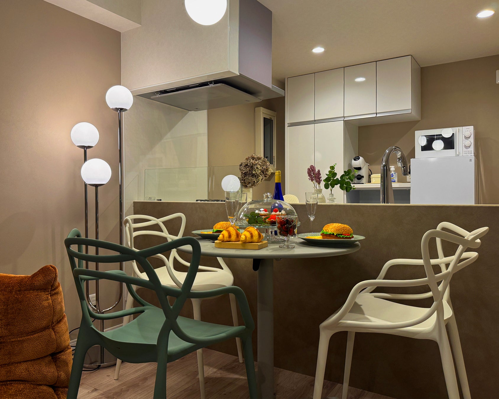 フル装備のキッチン: 調理器具一式、最新家電、消耗品を完備。高円寺の商店街で買った食材で料理を楽しむなど、ホームパーティーのような過ごし方も可能です。