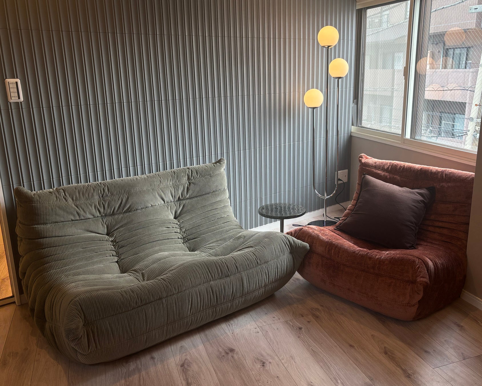 ligne roset(リーン・ロゼ)のアイコンソファ「ROSETTogo(ロゼトーゴ)」と、ローテーブル「ROSETLewa(ロゼレワ)」。