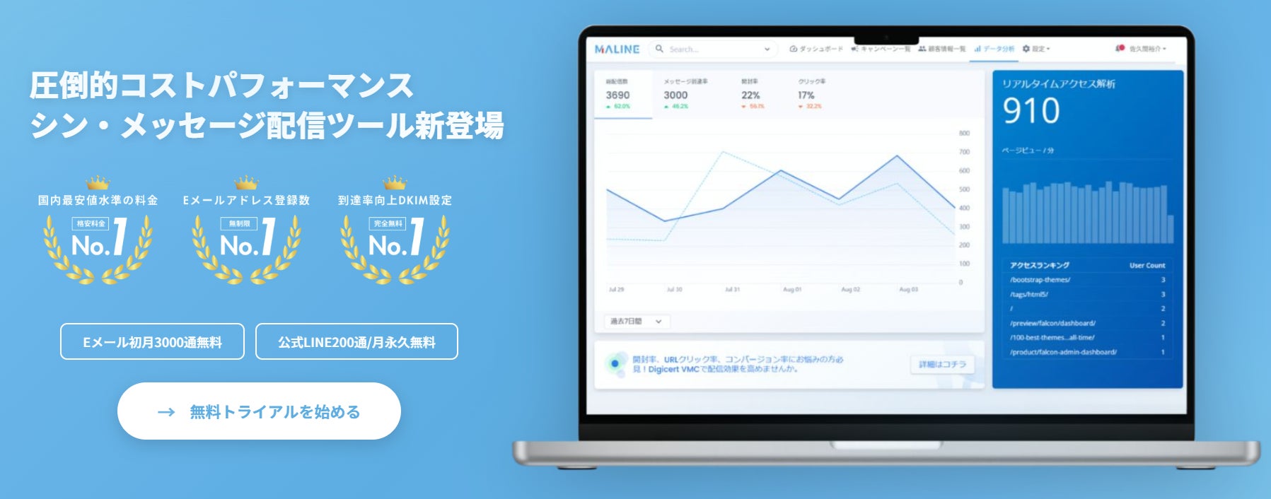 個人事業主も、中小企業も、大企業も。規模や予算に関わらず、すべてのビジネスが本質的なマーケティングに集中できる世界をつくりたい。そのために私たちは、「配信数だけで課金する」、「登録アドレス数に縛られない」、「すべてのプランでAIを使える」という、これまでの常識を覆す料金体系と機能をMALINE(マリン)に込めました。コストの壁をなくした先に、はじめて本当のマーケティングが始まります。