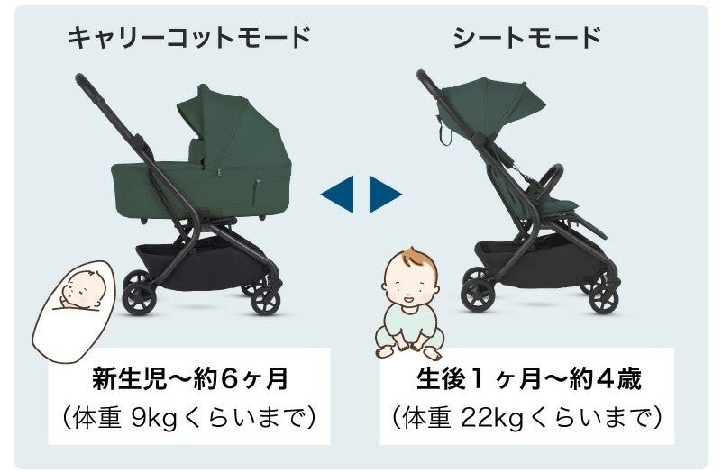 お子さまの成長に合わせて、キャリーコットとAB型ベビーカーを切り替えて使用できます。
