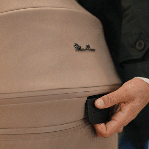 ワンアクションで折り畳みが完了。操作が簡単ですので外出先や旅行時のストレスを劇的に軽減します。折りたたみレバーのあるハンドル部にはヴィーガンレザーを使用。高級感あふれる手触りを実現しました。