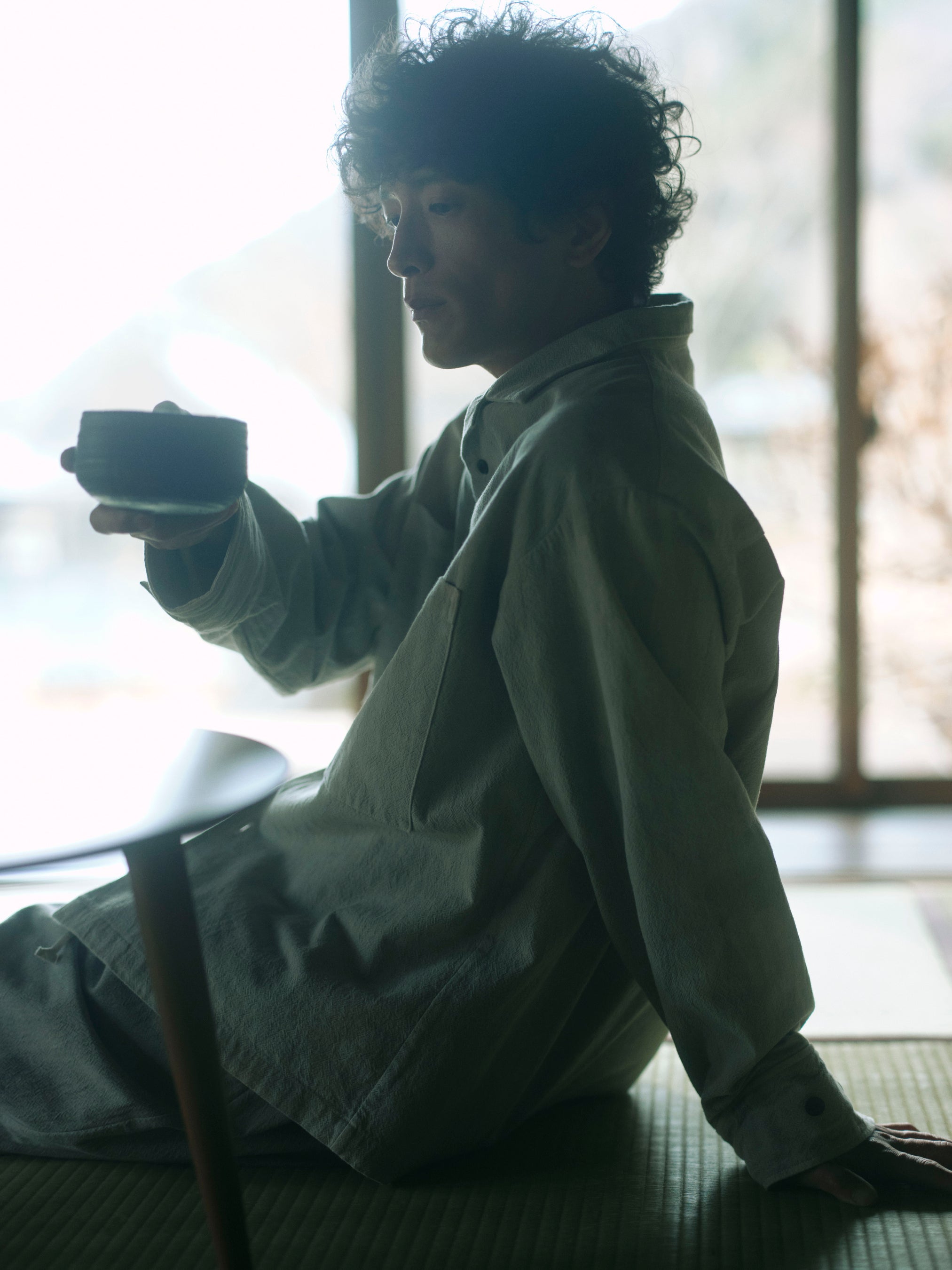 カラー展開は、水の流れをイメージした「水面」「深緑」(仮)の2色。時間や場所ごとに変化する水の流れを桐染のグラデ―ション染めで表現。