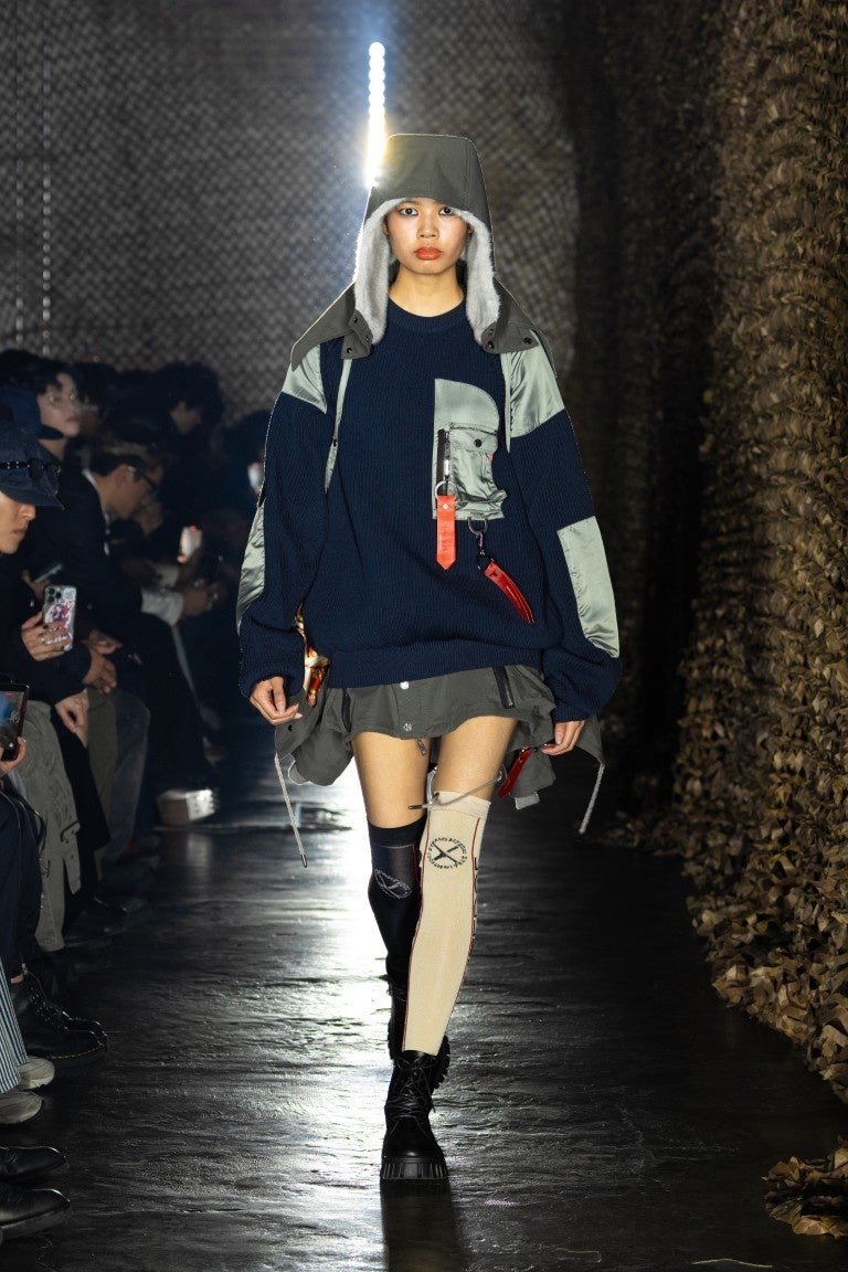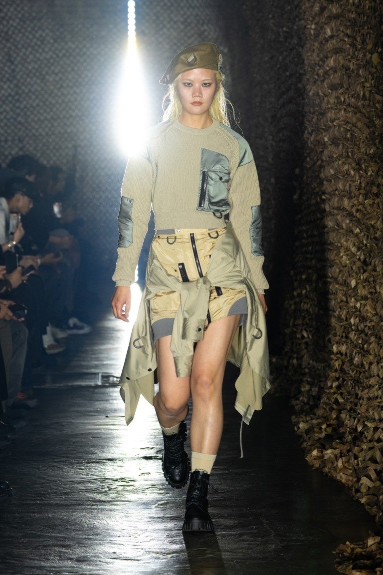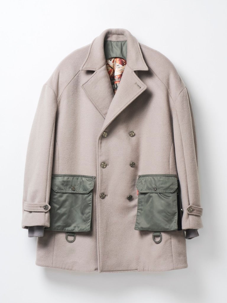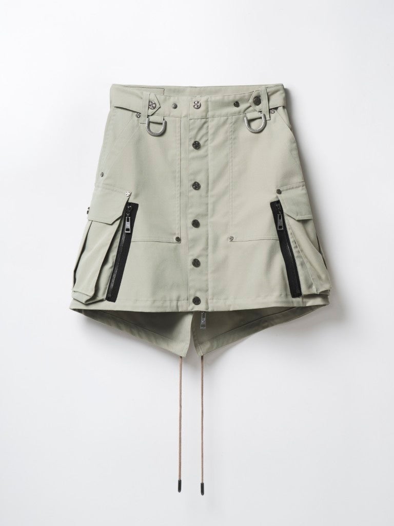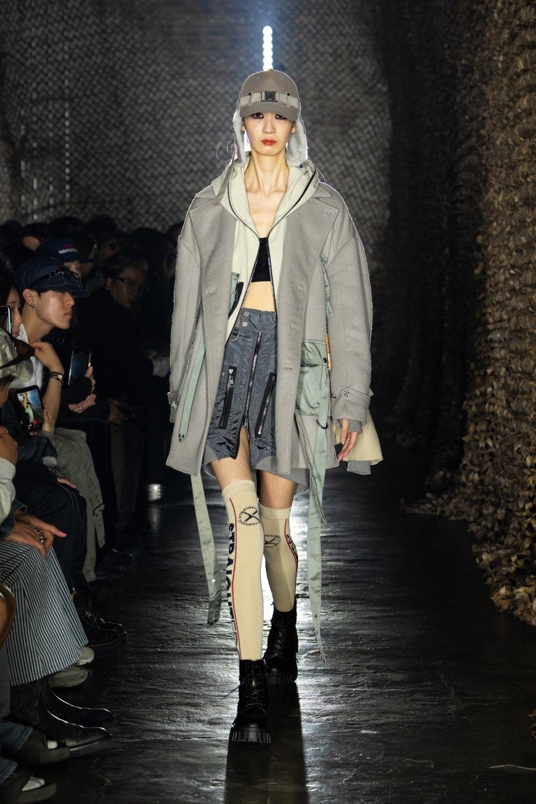 展開されるアウターには、ミリタリー由来のパラシュートベルトを搭載。着用時だけでなく、背負う動作によって裏地に施されたグラフィックが現れる仕様とするなど、機能性と視覚的表現を両立しています。