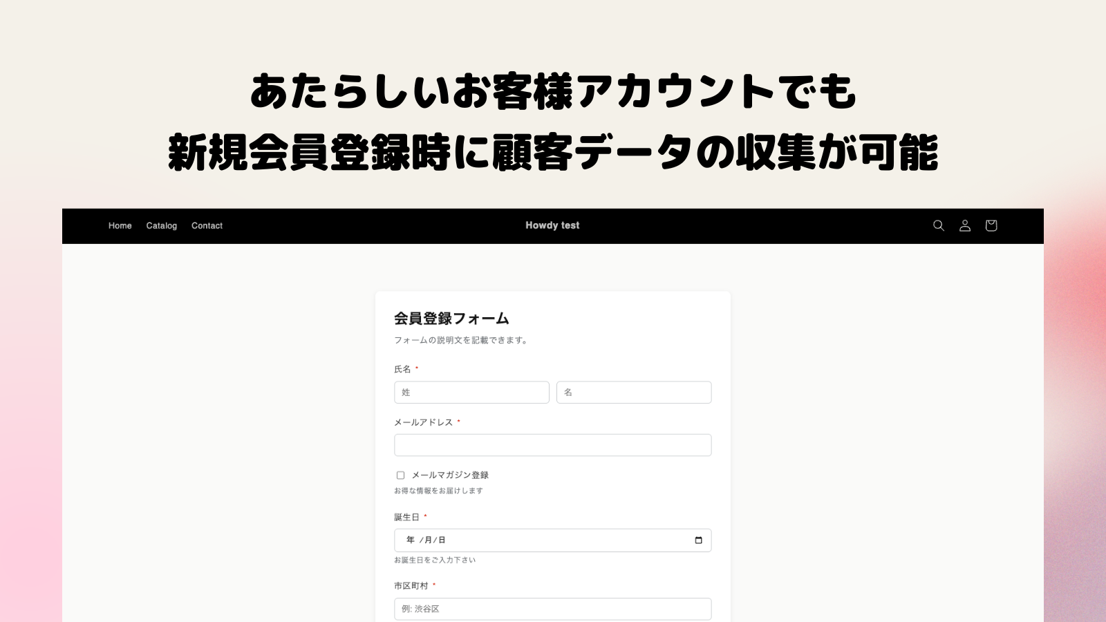 Howdy 新しいお客様アカウント 新規会員登録フォーム Shopifyアプリ - Shopifyの新しいお客様アカウントにて会員登録フォームを使用する新たな選択肢を提供
