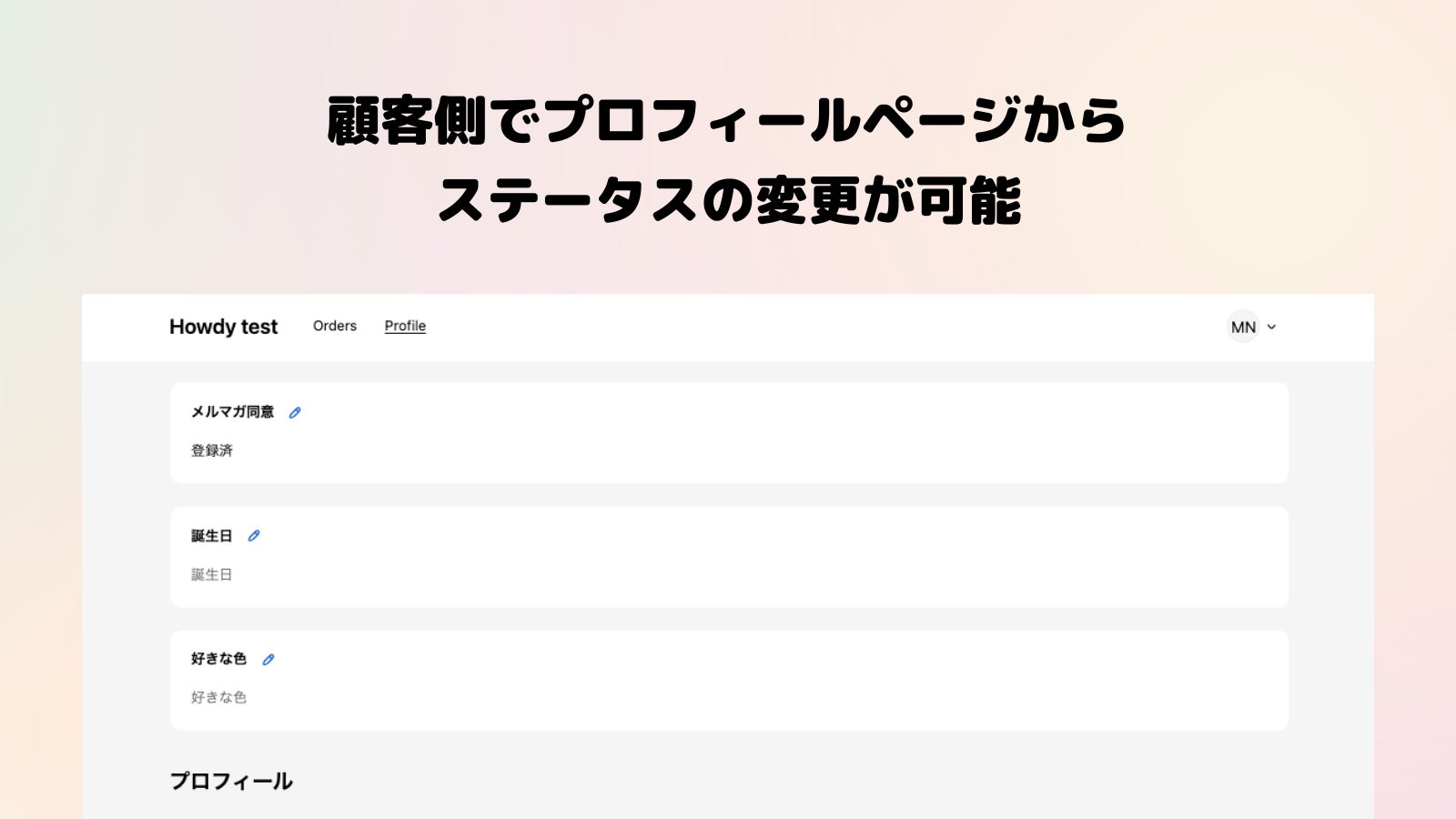 またプロフィールページ(新しいお客様アカウントでのマイページ)で、取得した会員情報を編集する機能にも対応しており、顧客側でも自由に入力内容を変更することができます。