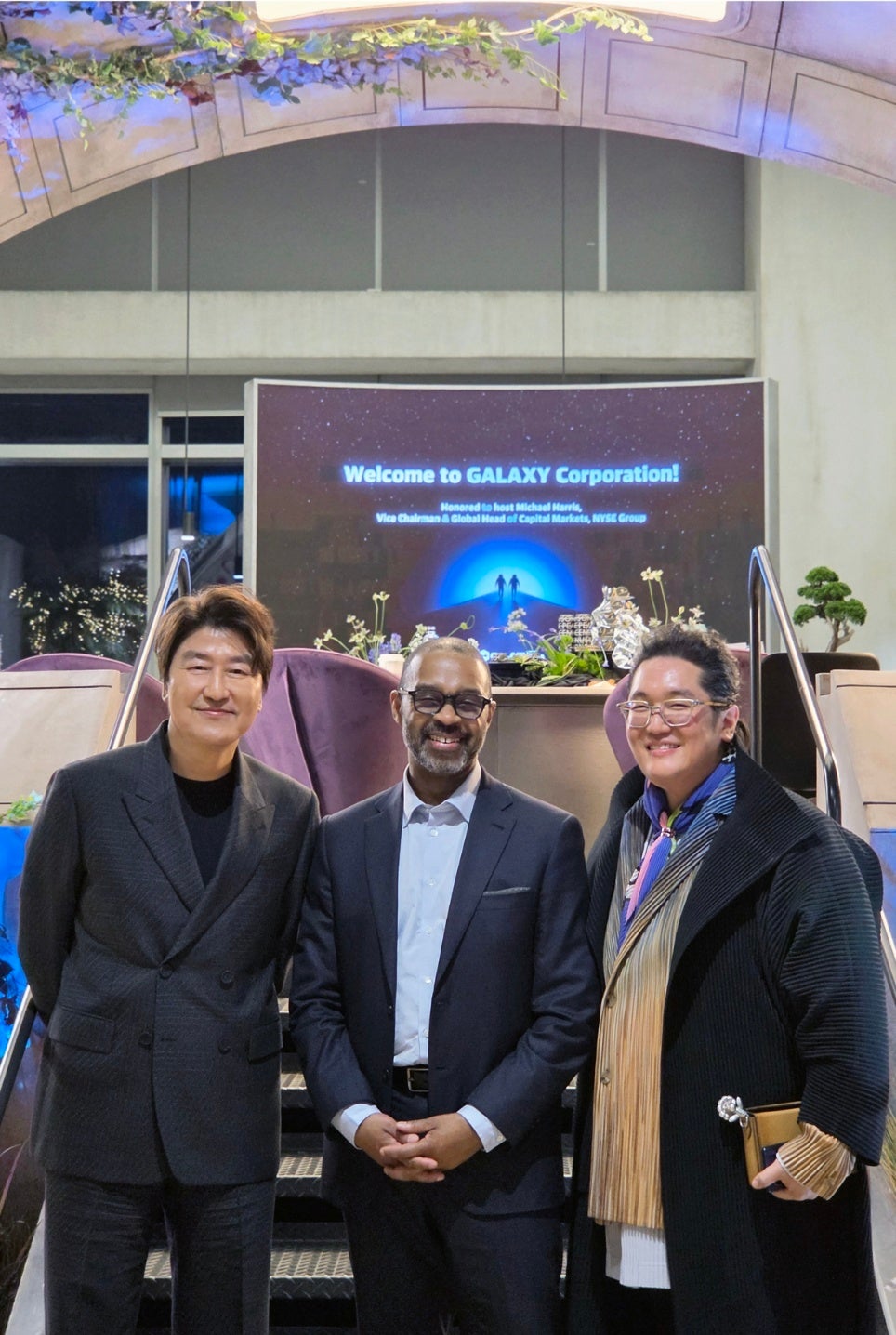ハリス副会長は同日、ギャラクシーコーポレーションの米国株式市場上場の可能性を直接確認するため同社を訪れた。この場には、韓国を代表する俳優であり、同社の一員でもあるソン・ガンホ氏も同席。同氏の存在そのものが、技術とコンテンツを融合させたギャラクシーコーポレーション独自のIP競争力を自ら体現する形となった。ハリス副会長は企業ツアーの間、感嘆の言葉を繰り返し、同社のビジョンに対し深い感銘を表明した。