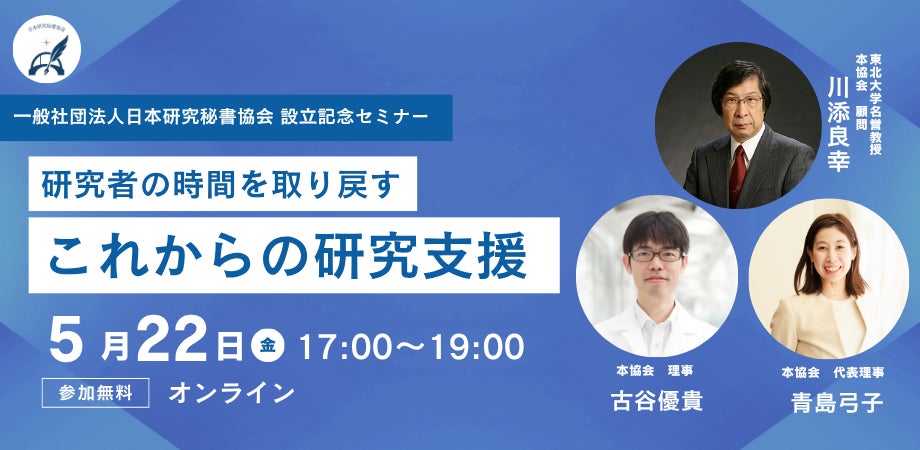 同協会はその第一歩として、2026年5月22日(金)に設立記念セミナー「研究者の時間を取り戻す これからの研究支援」を開催します。