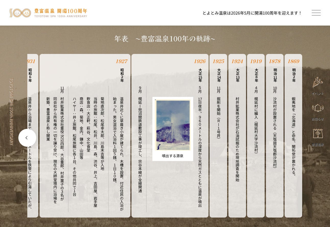 世界でも類を見ない「油分を含んだ泉質」の北海道・豊富温泉(とよとみ温泉)が2026年5月17日 に開湯100周年を迎えます。ここから1年を100周年イヤーとして、イベントなどで盛り上げます。
