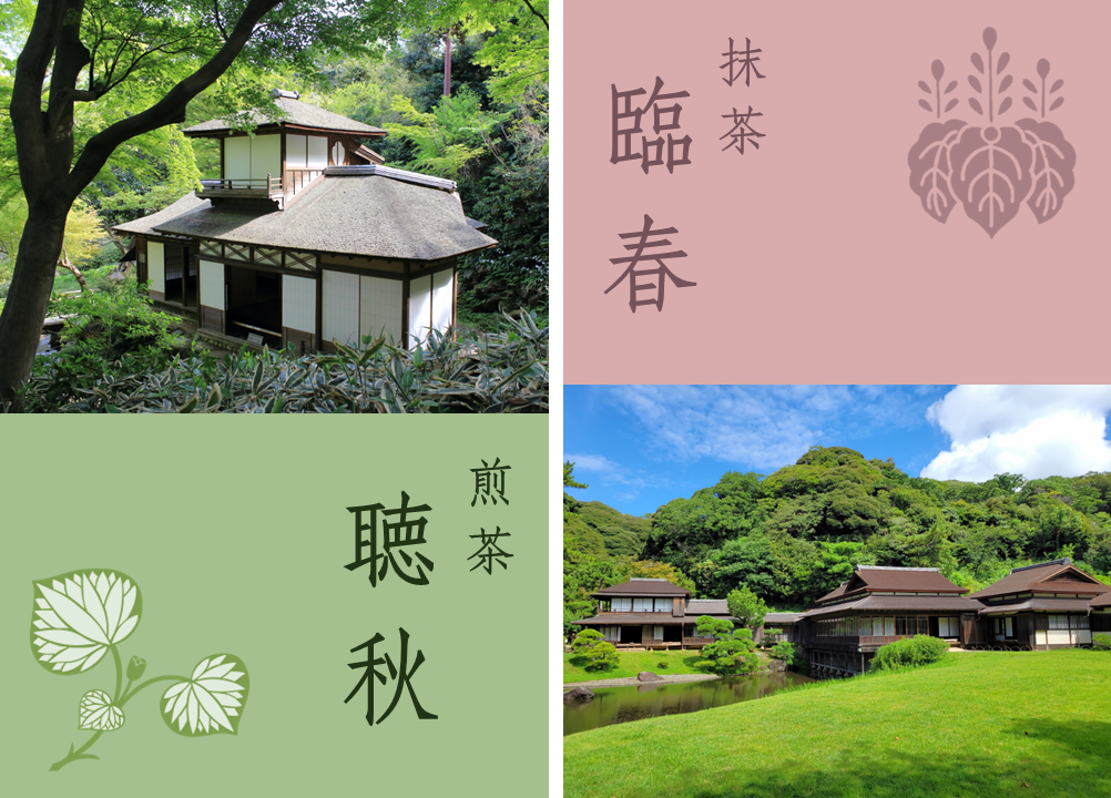 近代三茶人の一人に数えられる原三溪が創設した三溪園には、多くの茶室が点在しており、今でも茶会に利用されています。園内の代表的な建造物2棟をイメージしたオリジナルの抹茶「臨春」・煎茶「聴秋」を提供します。