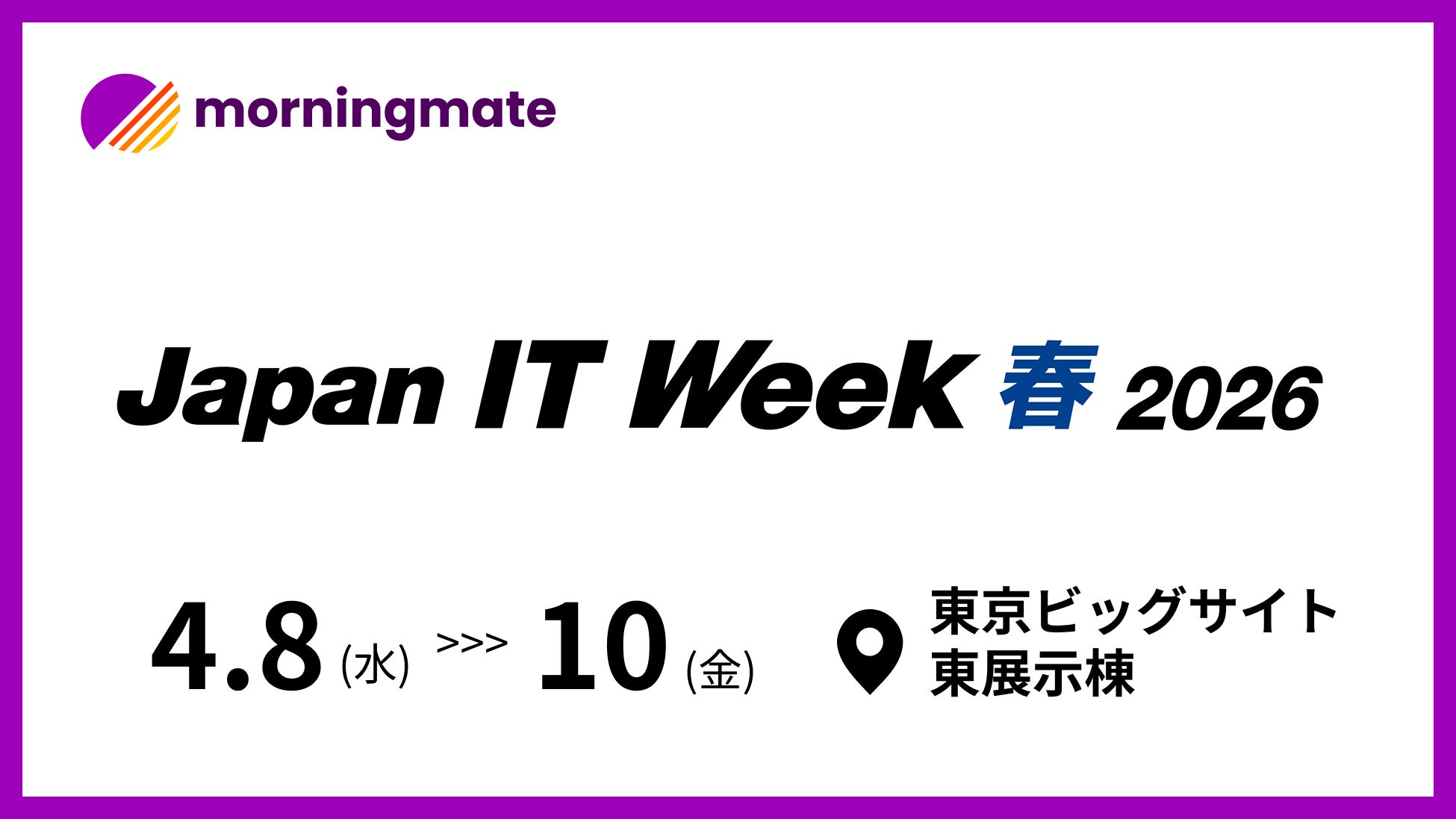 グローバルコラボレーションプラットフォーム「morningmate(モーニングメイト)」は、4月8日から10日まで東京ビッグサイト(東京ビックサイト)で開催される日本最大級のIT展示会「Japan IT Week Spring 2026」に公式出展します。