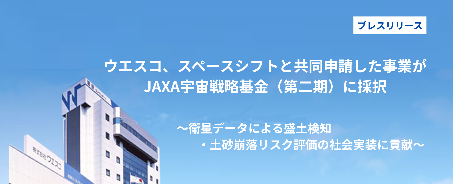 総合建設コンサルタントである株式会社ウエスコ(本社:岡山県岡山市、代表取締役社長:北村彰秀、以下「ウエスコ」)は、国立研究開発法人宇宙航空研究開発機構(以下「JAXA」)が公募した宇宙戦略基金(第二期)の技術開発テーマ「衛星データ利用システム実装加速化事業」において、採択されたことをお知らせします。本事業は当社を代表機関とし、株式会社スペースシフト(本社:東京都千代田区、代表取締役:金本成生、以下「スペースシフト」)を連携機関として共同申請した技術開発課題「マルチモーダルAIによる違法・不正盛土検知と土砂崩落リスク評価」です。