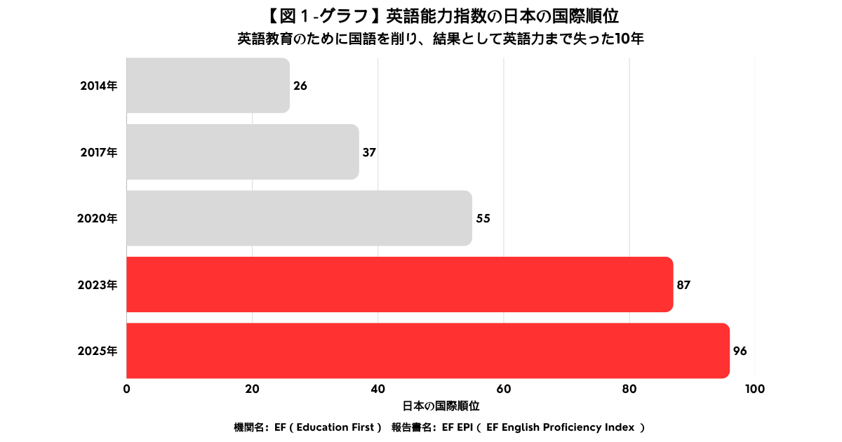英語教育の強化から10年、にもかかわらず、英語力の国際順位は低下、昨年、ついに長年たもってきたIQ世界トップの座から陥落。今こそ母語の「読み書き」教育の見直しが必要ではないか、国語専門塾が提唱します。