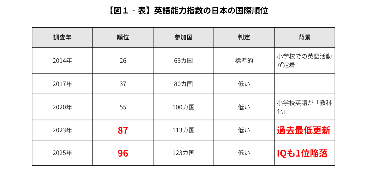 ■英語教育の強化と裏腹に、下落する英語力、ついにはIQも首位陥落