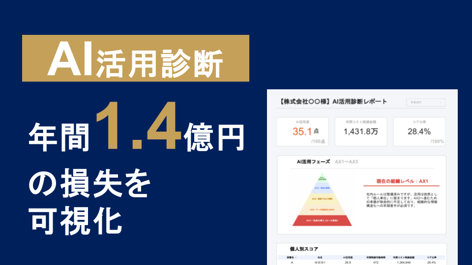 年間1.4億円の損失を可視化した『AI活用診断』リリース。〜東大・松尾教授提唱のAX指標で、組織の“盲点”を地図にする〜