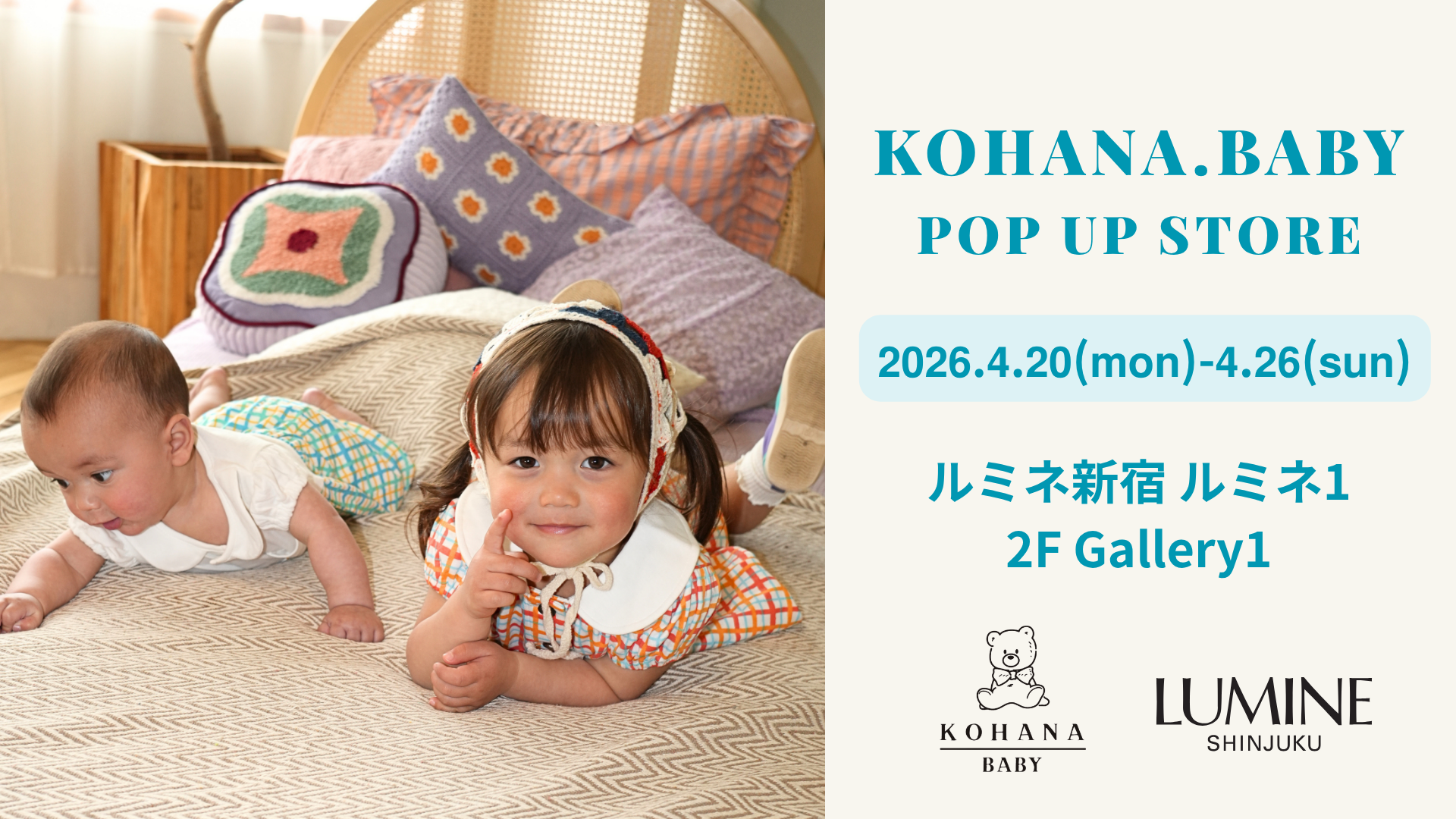 ベビー&キッズ服を展開するブランド「KOHANA.BABY(コハナベビー)」は、2026年4月20日(月)〜 4月26日(日)の7日間、ルミネ新宿 ルミネ1 2F Gallery1にて「KOHANA.BABY POP UP STORE in LUMINE SHINJUKU」を開催いたします。