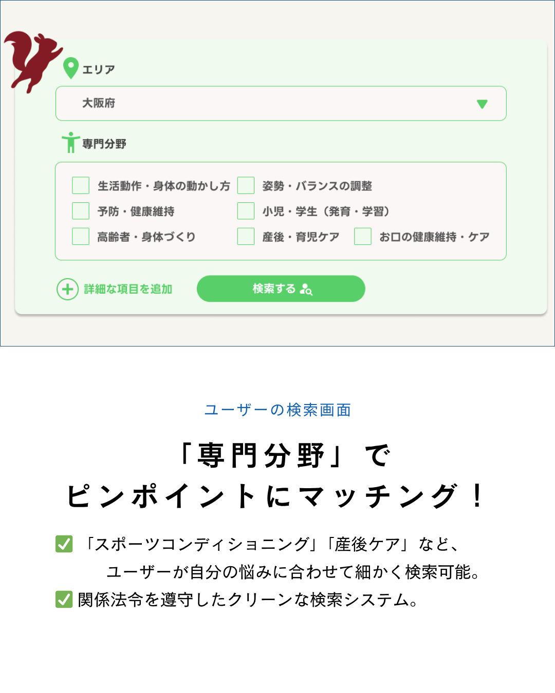 原則として広告が禁止されている事項であっても、一定の要件(限定解除要件:費用、リスク、問い合わせ先の明示など)を満たすことで、適切な情報提供が可能となります。セラピストナビは、この複雑な要件をプラットフォームのUI/UXに組み込んでおり、施設やセラピストが案内に従って入力するだけで、自動的に法的にクリーンな情報ページが生成される設計となっています。