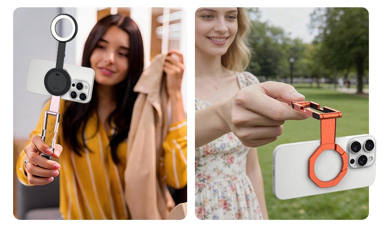 多機能スマホスタンド「MagLok03」は、ポケットに収まるコンパクトサイズ。1つのマウントで5通りの撮影スタイルに対応し、撮りたいアングルを瞬時に実現。カラビナ風フックで、バッグにサッと装着。いつでもどこでも、プロ級の撮影体験を叶えます。