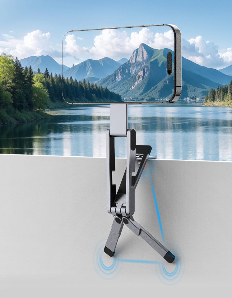 隠しフックデザインにより、モニターや椅子の背もたれ、ドアの縁、手すりなどに掛けるだけで簡単に設置。瞬時に高い視点の俯瞰アングルを実現できます。カフェやオフィス、旅行先でも場所を選ばず撮影でき、より多彩な構図を楽しめます。