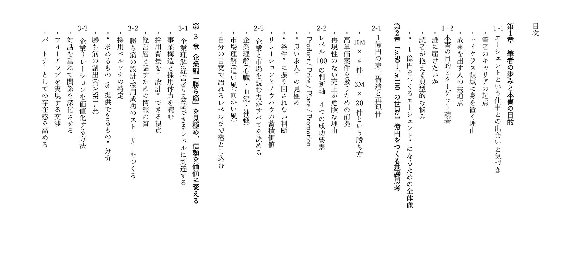 書籍の執筆はすでに完了しており、現在は出版に向けた最終工程に入っています。本書では以下の3つを柱に、人材紹介業における再現可能な営業モデルを解説しています。