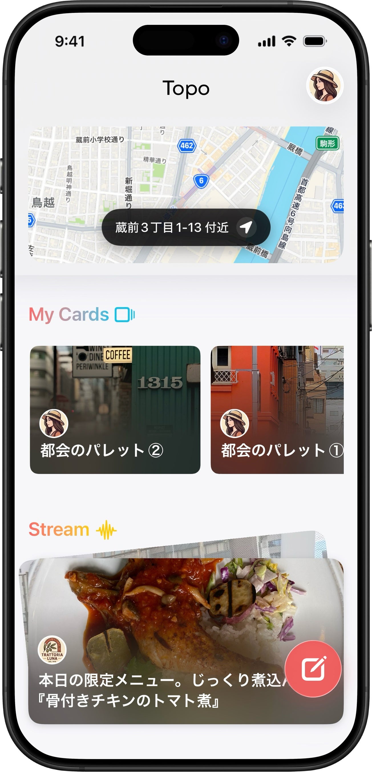 投稿は3日後に消え、永久に残らないからこそ、その瞬間の情報に特別な価値が生まれます。リアルタイムな情報が街に広がり、Topoを通じて新たな街の“今”が形づくられます。
