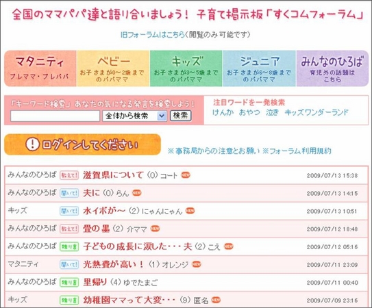 ●子育てのお悩み・疑問は掲示板で相談!「すくコムフォーラム」