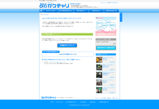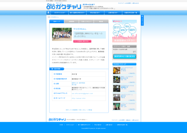 学生による学生のためのチャリティサイト「ガクチャリ」( http://gakuchari.jp/ )を