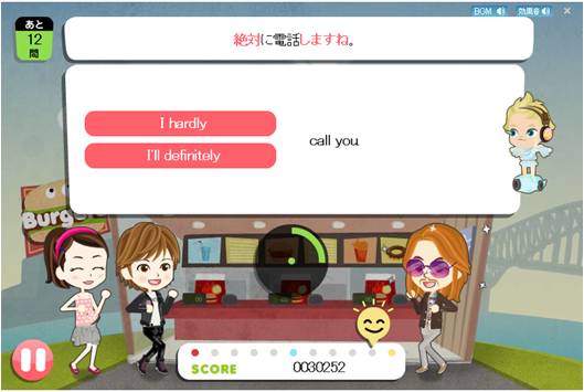 問題の流れがどんどん早くなるので気が抜けず、ゲームに集中しますので、表現を覚えるサポートにもなります。