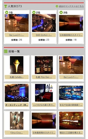 株式会社北澤企画事務所(東京都文京区)が運営するニュースサイト「BAR TIMES(バータイムズ)」の公式facebookページでは、日本全国のバーの情報を投稿して参加するコンテスト「BARレポート コンテスト」を実施しています。facebookファンによる得票数が多かった3位までの投稿に対して賞品を進呈する写真投稿型コンテストです。