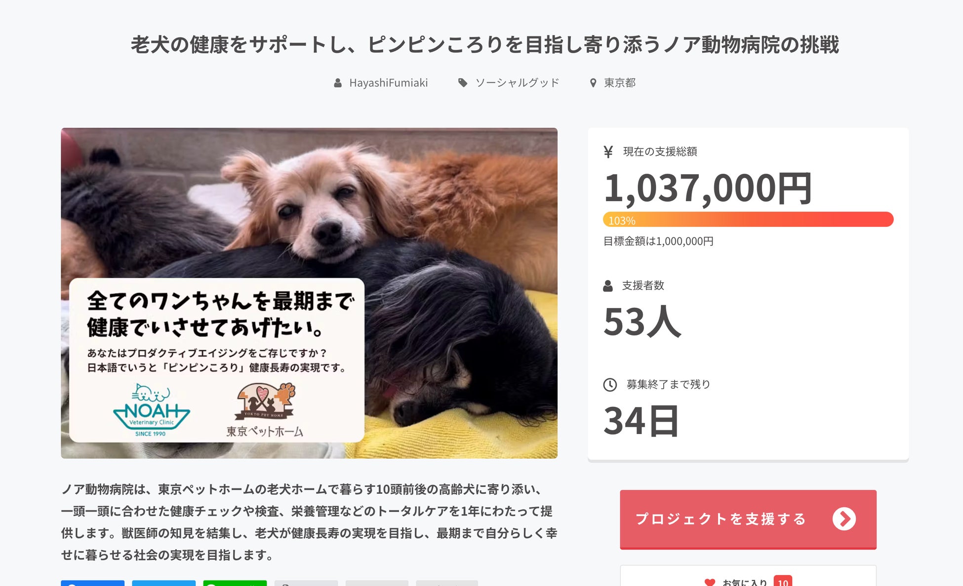 【100%達成】老犬の健康をサポートし、ピンピンころりを目指し寄り添うノア動物病院の挑戦