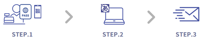 POSレジの免税販売情報を「eあっと免税連携フォーマット」(CSVデータ)で書き出して、「eあっと免税」に免税販売データを取り込み、免税データを送信します。