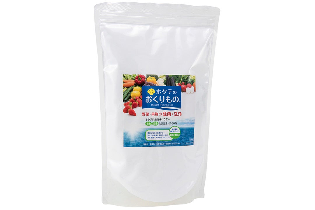 - 日本は、耕地面積当たりの農薬使用量が世界第3位で、日本の野菜・果物には、残留農薬がいっぱいです。コロナ禍時代の免疫力や健康維持には、まずは安心・安全な食べ物が大切です。「ホタテのおくりもの」は、ホタテの貝殻からできた天然素材100%で、野菜・果物の残留農薬を落とすことができるホタテ貝殻パウダーです。