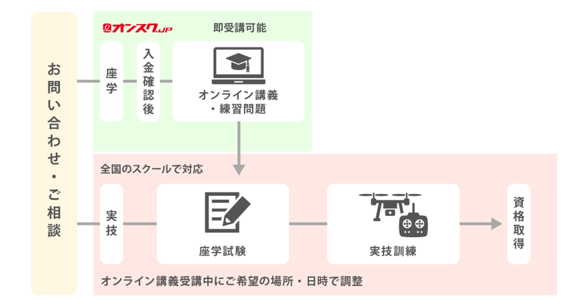 - オンスク.JP『国土交通省認定ドローン操縦士通信講座』とは?