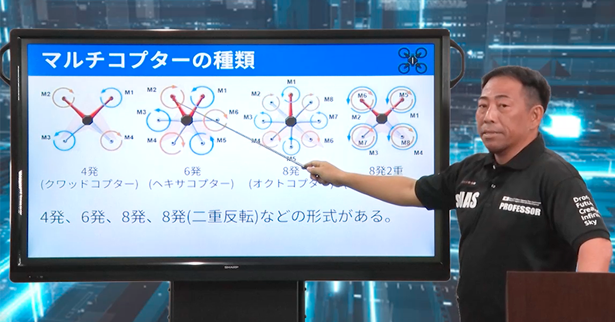 しかも!講義内容はドローンの歴史や構造、航空法など飛行に関する法律の基礎知識を学べるだけでなく、より深い自律飛行や目視外飛行の知識も含まれているのが最大の特長。